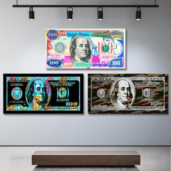 Fill your walls with Benjamins. The Big Bill Canvas Art Bundle is perfect for any hustler. This bundle includes 3 wide-sized money pieces: